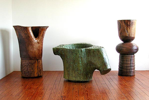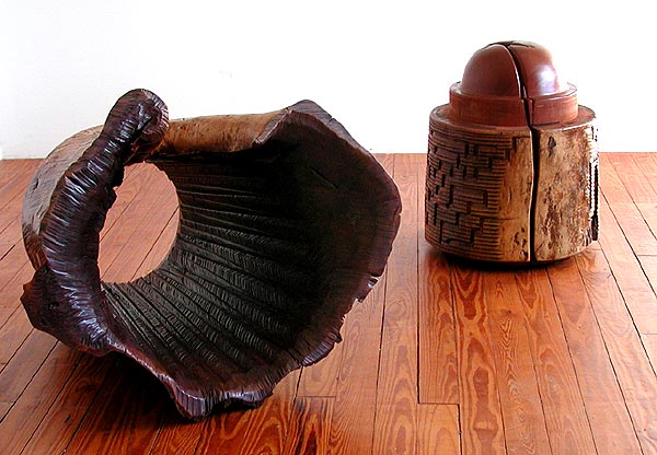 Mark Lindquist Ancient Archaeological Captive 1990-1992 27"H x 43 1/2"W x 34"D Pecan/Polychrome (Verdigris)