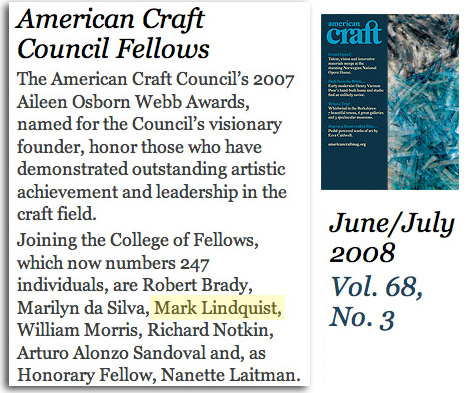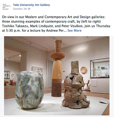 Toshiko Takaezu, Mark Lindquist, and Peter Voulkos..."