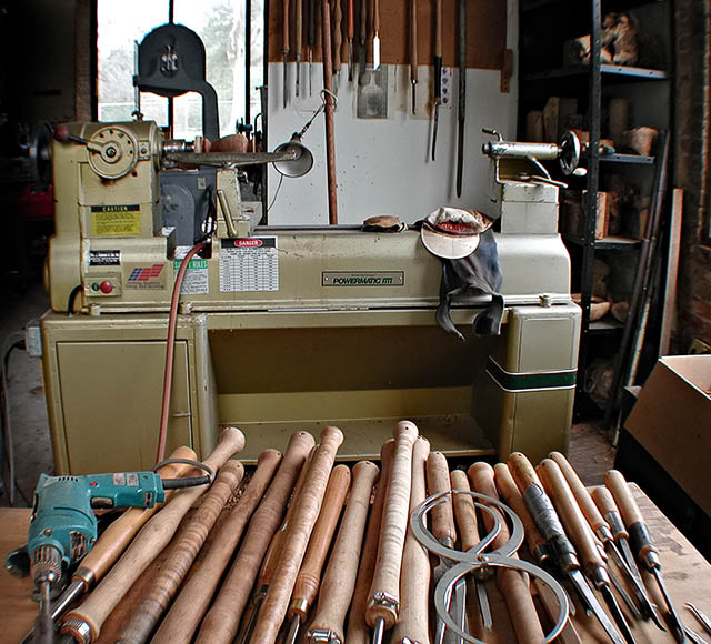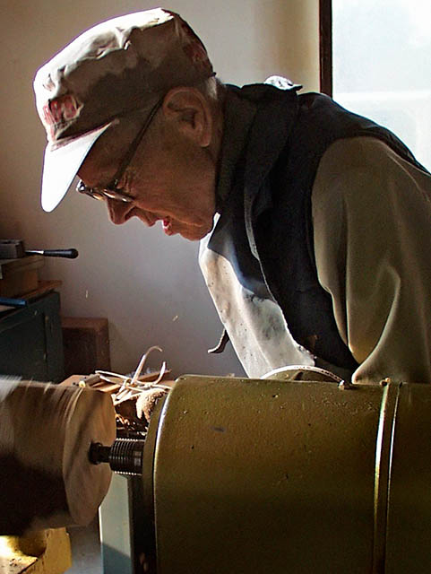 Lindquist turning in his streamside studio in New Hampshire, circa 1983